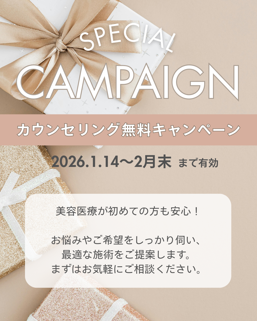 2月まで実施しておりました、美容カウンセリング無料キャンペーン、