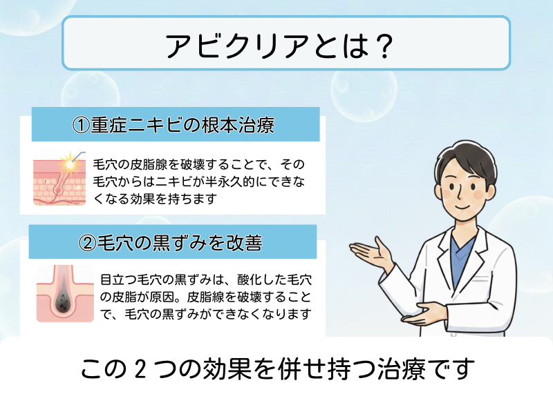 アビクリアは、皮脂線だけを選択的に作用するレーザー治療機器です。